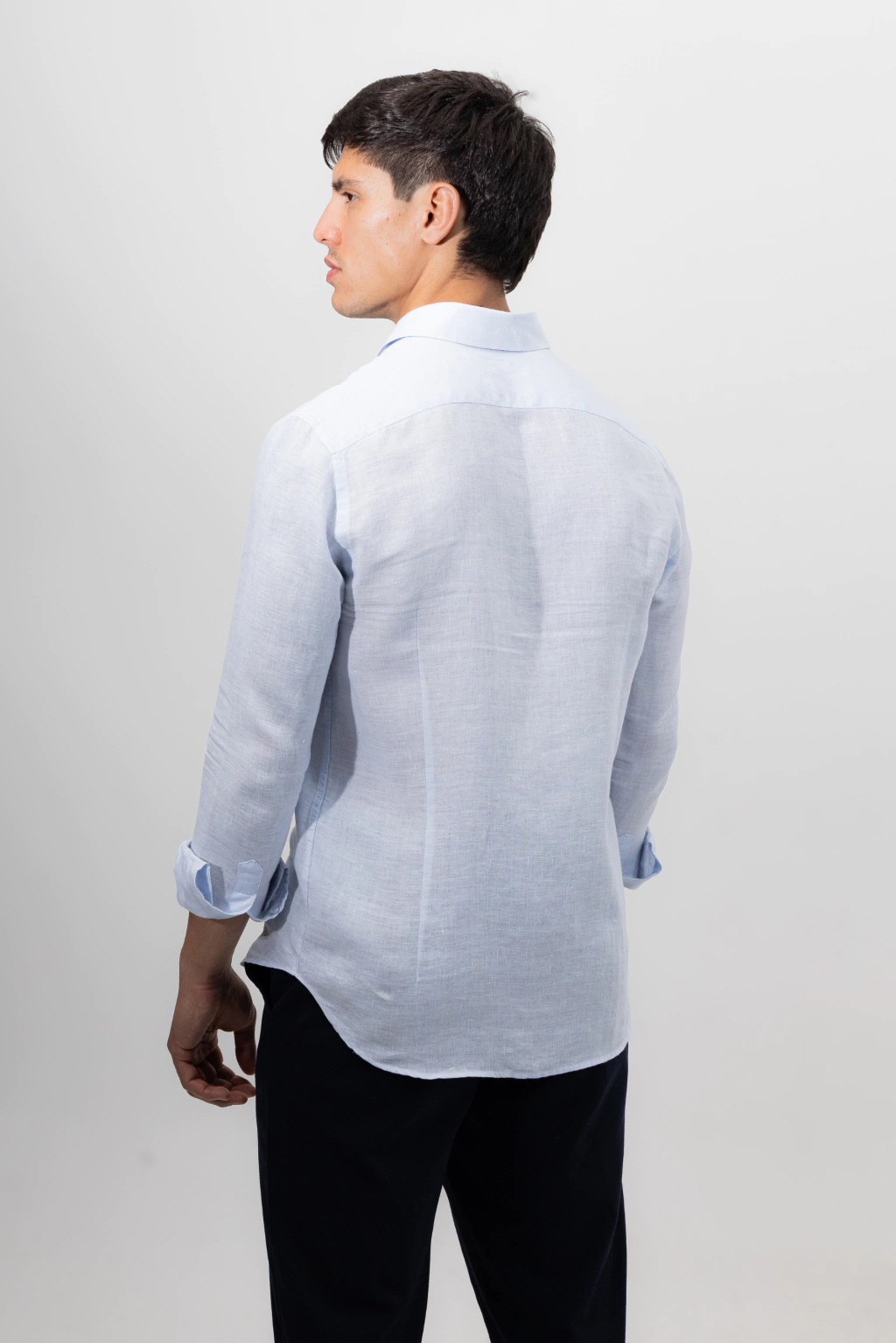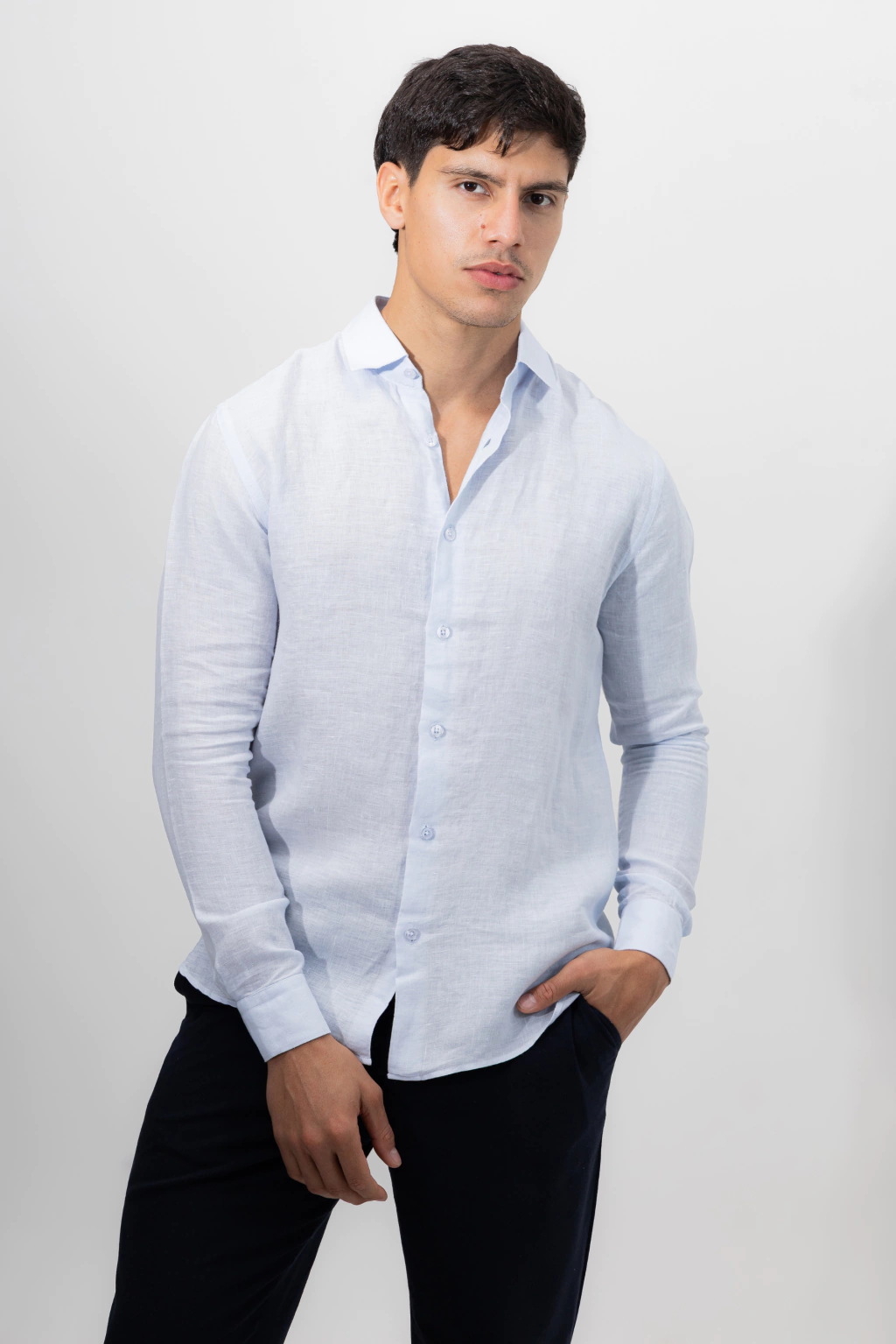 A Camisa Azul em Linho é a escolha perfeita para o homem que busca elegância atemporal com frescor e leveza.